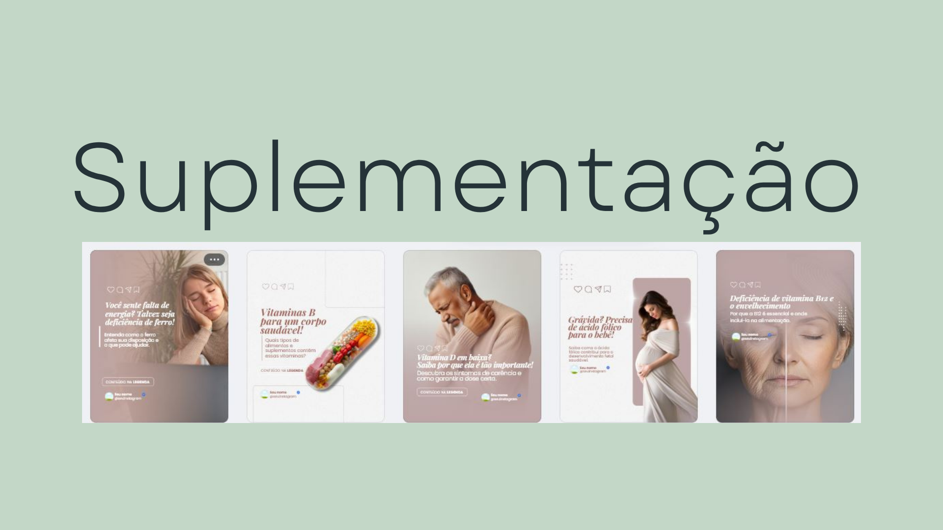 50 Posts e Legendas Prontas com foco em orientar o público sobre a importância da Suplementação , destacando seus benefícios para a saúde, desempenho e recuperação. Os conteúdos abordam diferentes objetivos e idades, ajudando o profissional a atrair seguidores com interesse real em melhorar seus hábitos com segurança e orientação.